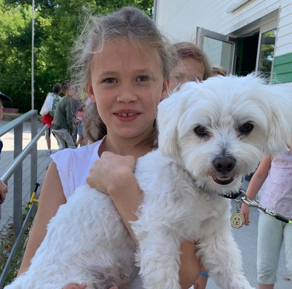 Der echte Held aus dem Buch stellt sich vor – ein freundlicher, kinderlieber Hund, der die Herzen der Kinder sofort gewinnt.